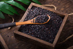 黑米种植历史悠久,是我国古老而名贵的水稻品种。相传距今2000多年前的汉武帝时便有种植,并被用作皇家供品,因而有“贡米”之称。 ◆优质黑米有光泽,米粒大小均匀,很少有碎米,无虫,不含杂质;劣质黑米的色泽暗淡,米粒大小不匀,饱满度差,碎米多,有虫,有结块等。 ◆黑米需要放在干燥的容器中密封保存,并且应做好防虫、防潮工作。 ◆黑米多半在脱壳之后以糙米的形式直接食用,这种口感较粗的黑米适合用来煮粥。泡米用的水要与米同煮,以保存其中的营养成分。
