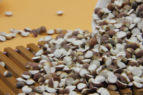 芡实又叫鸡头米、鸡头苞、鸡头莲、刺莲藕、鸡头子、鸡头果、鸡头、鸡嘴莲、雁头、雁啄实。中药处方中写芡实、芡实米、鸡头米均指生芡实,为原药除净杂质碾去外壳,生用入药者。 ◆芡实的质地好坏首先要看外观色泽,色泽白亮、形状圆整的一般质地比较糯,外观虽白但光泽不足、色萎的质地梗性。色带黄则可能是陈货,其质地也是梗性。 ◆芡实适宜置放在阴凉干燥、通风处。 ◆吃芡实要用慢火炖煮至烂熟,细嚼慢咽,方能起到补养身体的作用,而且一次不能食用太多,以50克为宜。